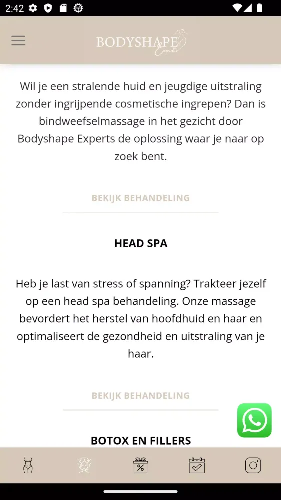 Bodyshape Experts Enschede stands as your ultimate partner for personalized care and body contouring solutions. Our application streamlines access to a wide range of specialized services that cater to your unique needs. From after lip massages to cellulite treatments, our offerings extend to advanced procedures such as Botox and fillers. Experience the artistry of facial connective tissue massage, indulge in exclusive head spa experiences, and transform your physique with our expert body shaping sessions.