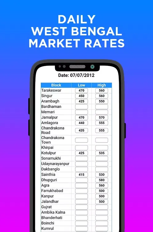 The "India Potato Market Rate App" serves as an indispensable tool for members of Paschimbanga Pragatishil Alu Byabsayee Samiti (PBPABS), offering up-to-date information on the daily market rates for potatoes across India. Designed to keep its users informed, the app provides the most recent market prices for potatoes, a crucial piece of information for anyone involved in the potato trade.