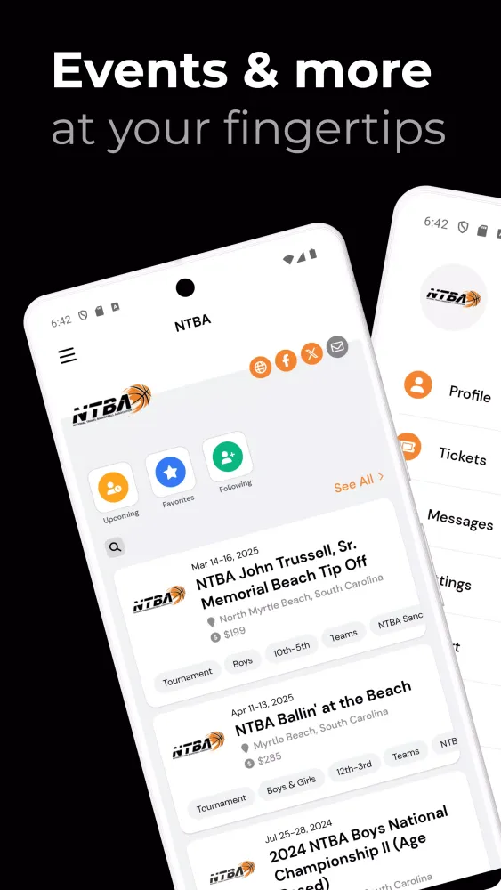 The National Travel Basketball Association (NTBA) app is designed to be your ultimate companion for all basketball-related events. Whether you're a coach, player, parent, fan, or member of the media, this app ensures that every aspect of the event is tailored to meet your needs. From quick searches and real-time updates to live game notifications and venue directions, NTBA simplifies your experience and keeps you informed like never before.