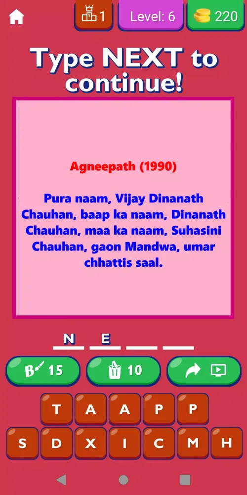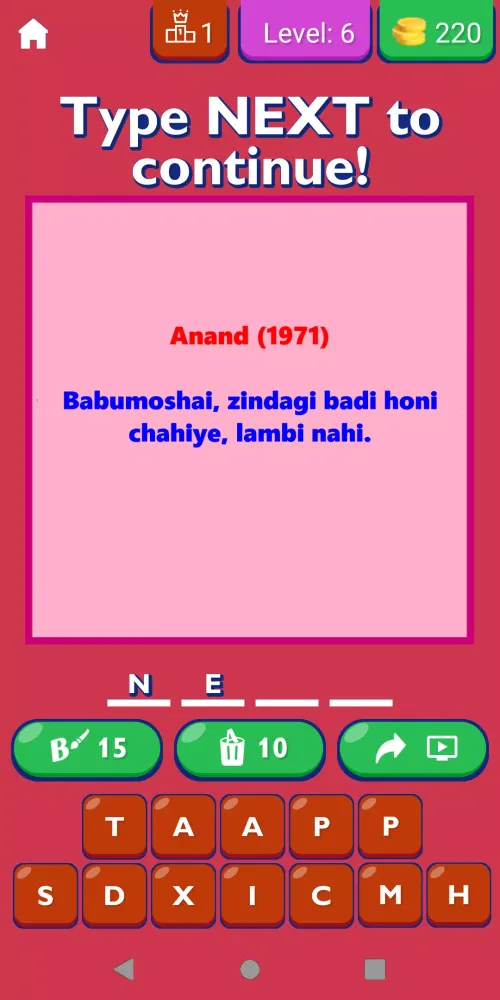 The app features an extensive library of dialogues delivered by some of Bollywood’s most celebrated actors, such as Shah Rukh Khan, Amitabh Bachchan, Aamir Khan, and many others. Each dialogue is carefully curated to reflect the essence of the film it originated from, allowing users to explore the nuances of Indian cinema through the lens of memorable one-liners and powerful monologues. The app also offers a unique feature where users can select letters after each dialogue to delve deeper into the treasure trove of Bollywood nostalgia. This interactive approach ensures that every user enjoys a seamless and immersive experience.