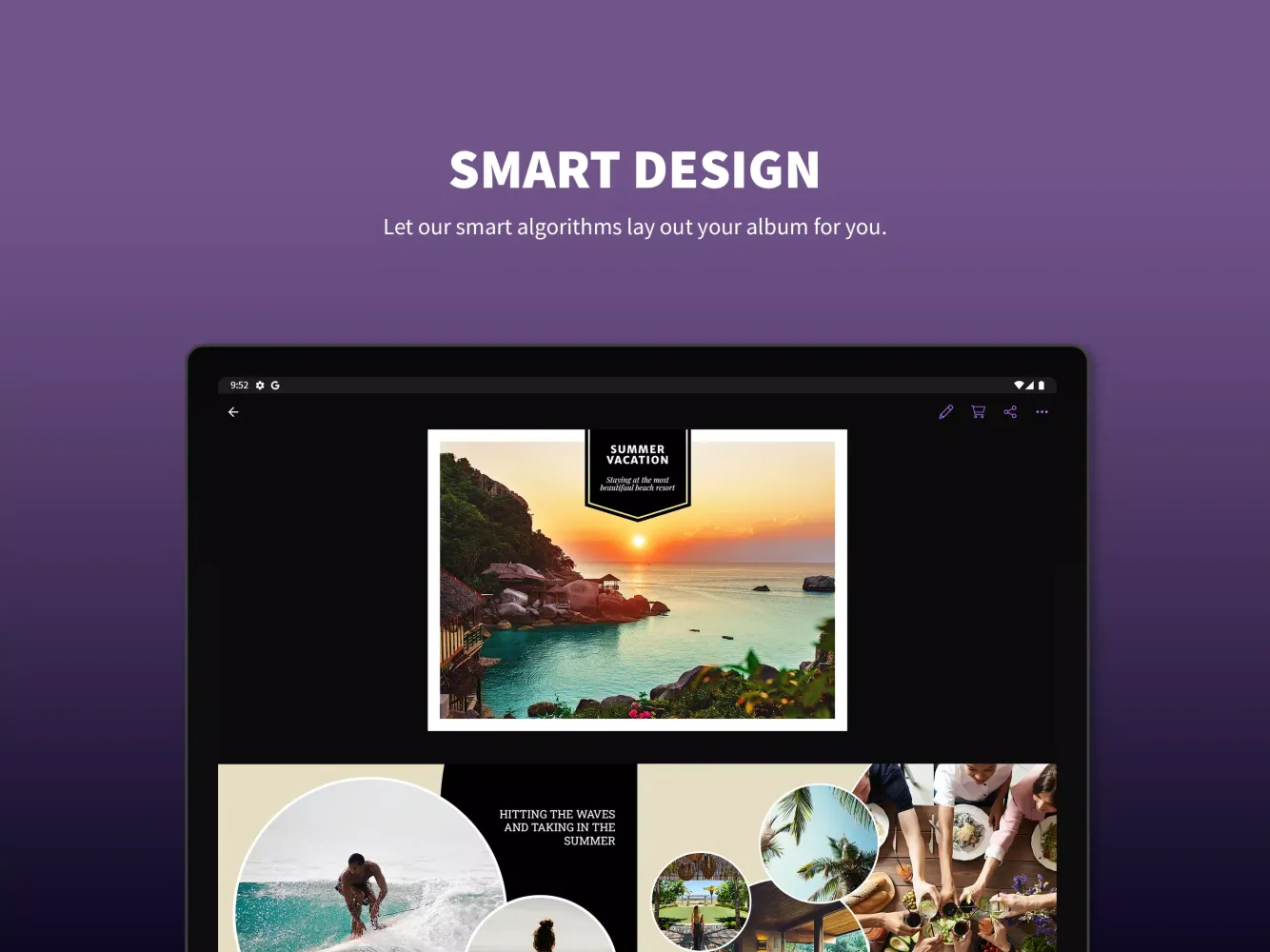 - Smart Design: Utilize our intelligent algorithms to automatically arrange your album, saving you time and effort.