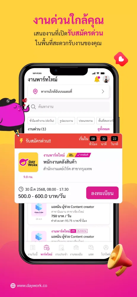 In today’s fast-paced world, many people are seeking ways to balance their personal lives with financial stability. Enter Daywork, the premier part-time job platform in Thailand, designed to empower individuals by offering flexible daily and hourly work opportunities from top brands right in their local areas. Whether you’re a student, a parent, or someone looking to supplement your income, Daywork provides an innovative solution that puts you in charge of your schedule.