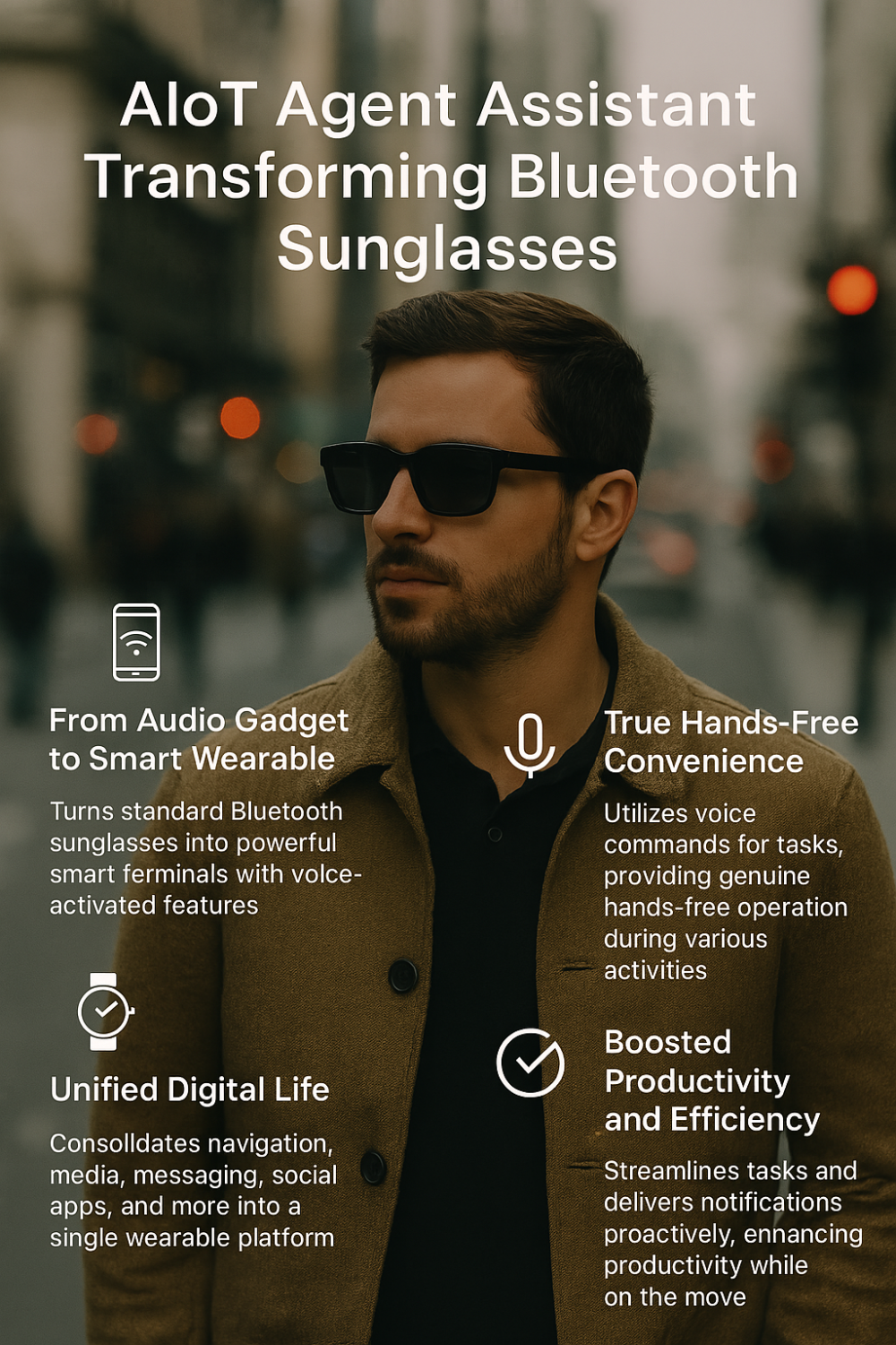 Alex’s breakthrough came on a hectic morning when he realized that his Bluetooth sunglasses, long relegated to mere fashion accessories, could be so much more. After pairing them with his mobile device and installing the Hyper AIoT Agent Assistant app, Alex activated the assistant with the simple keyword “Hyper.” Instantly, his sunglasses transformed into a powerful smart terminal. As he drove to an important client meeting, the assistant provided real-time navigation via Google Maps, adjusted his media playback, and even relayed notifications from his social media accounts—all without requiring him to touch his phone.