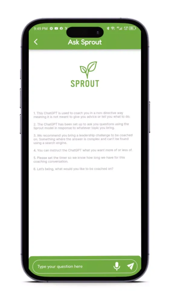What sets Coach with Sprout apart is its integration of advanced technology. Our AI Coach, Enzo, serves as your personal mentor, guiding you step-by-step through the intricacies of the Sprout model. Through hands-on experience, Enzo helps you understand the nuances of non-directive coaching by first allowing you to experience being coached yourself. This immersive method ensures that you grasp not only the theory but also the practical application of these techniques.
