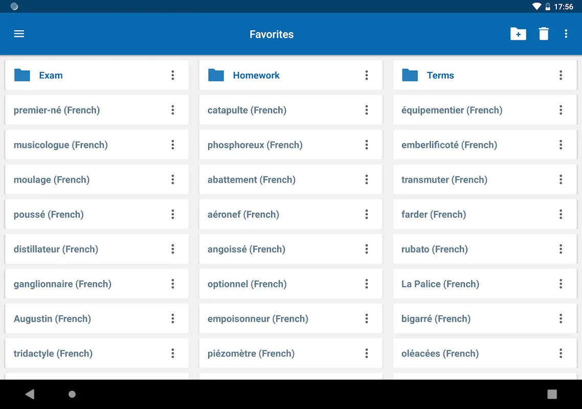 • Designed to give you the freedom to structure your studies the way you see fit the 'Favorites' option allows you to create custom folders with lists of words from the vast library of entries