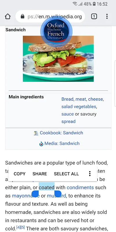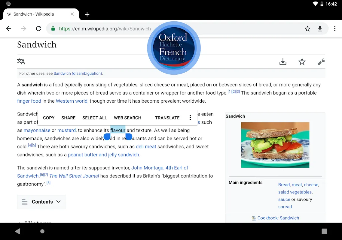 • Search autocomplete helps you find words quickly by displaying predictions as you type