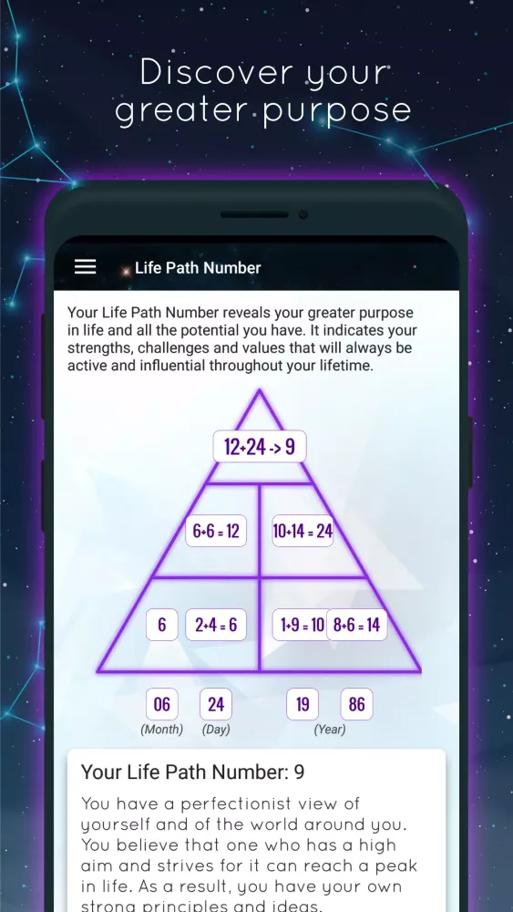 The universe is a complex system that can be understood through its most fundamental components: numbers. This principle extends to you as well, with your unique set of personal numbers acting as hidden fingerprints of your true identity. The "Numerology and Destiny Numbers" application leverages the laws of mathematics and esoteric numerology to decode the mysteries of your birth date and name.