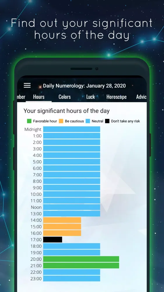 Unlock the power of daily predictions and numerology charts tailored to your birthdate and the contextual elements of each day. Our app provides: