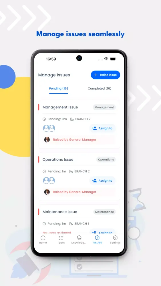 No more time wasted tracking and resolving issues manually. Operate App's advanced automation capabilities enable you to manage and track issues effortlessly. From customer complaints to equipment malfunctions, the app routes tasks to the appropriate personnel and ensures swift resolution. This minimizes operational disruptions and maintains a high standard of service, ensuring smooth and efficient operations.