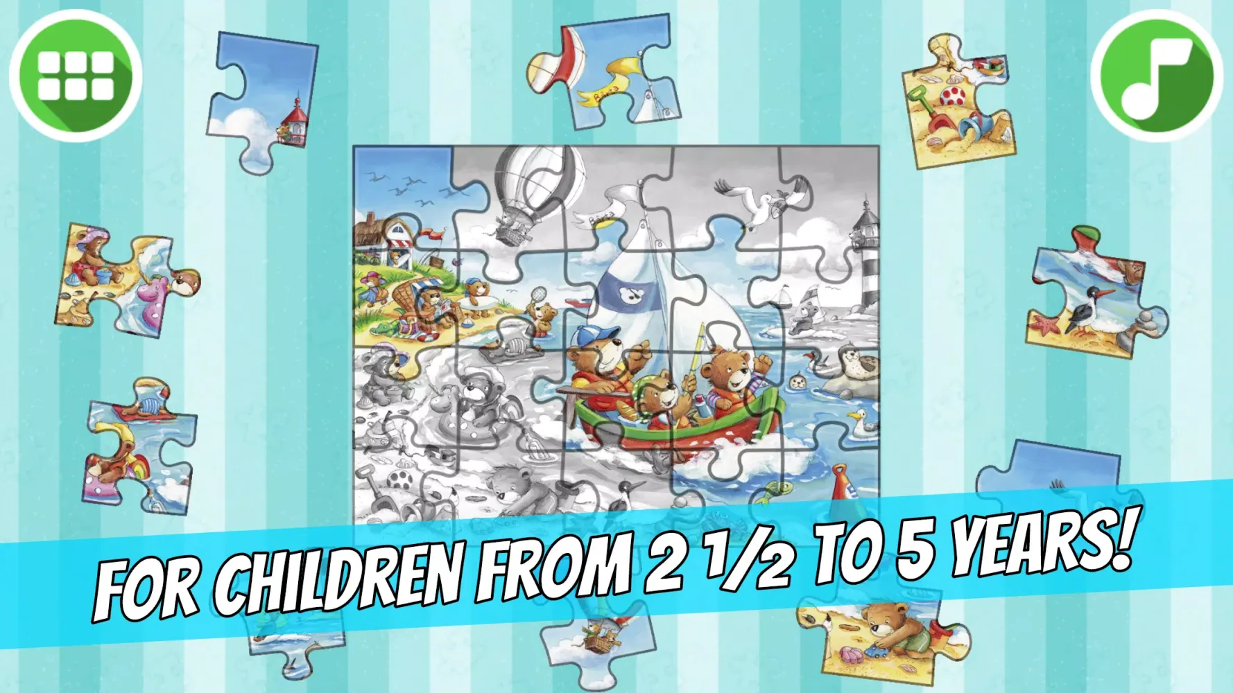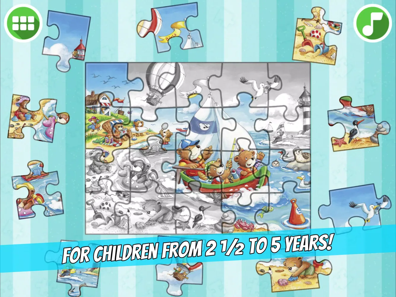 This app is tailored to cater to the abilities of preschool children aged 2.5 to 5 years. The puzzle pieces are designed so that they cannot be accidentally rotated, making it easier for little hands to engage with the puzzles. Additionally, the table is centered, allowing children to focus entirely on completing the puzzles without any distractions. Multiple children can even work together on a single puzzle, fostering teamwork and collaboration.