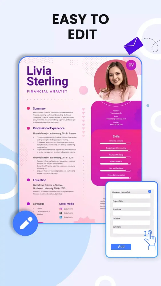 The CV Maker & PDF Resume Builder App is an indispensable tool for anyone looking to create a standout CV or cover letter. Whether you're a fresher or an experienced professional, this app simplifies the process and enhances your chances of landing your dream job. If you have any queries, feel free to reach out to us. We are here to assist you every step of the way!