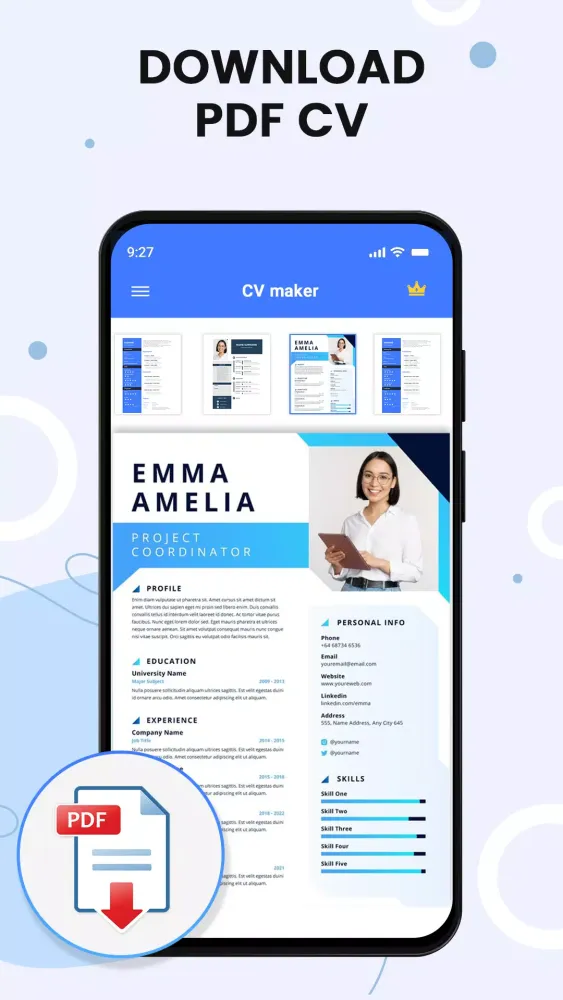 The CV Maker & PDF Resume Builder App is designed to simplify the process of creating professional CVs and cover letters for job searches. This powerful tool allows you to input your personal information, educational background, work experience, skills, and other relevant details effortlessly. The app offers an intuitive interface that guides you through each step, ensuring your documents are not only informative but also professionally formatted.