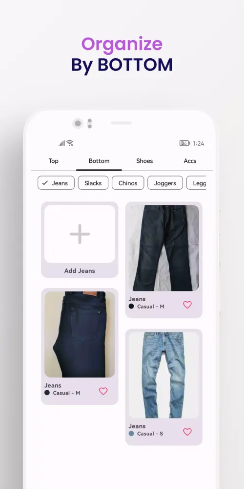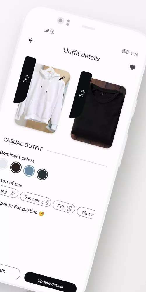 With My Outfit, organizing your wardrobe has never been easier. The app allows you to upload photos of your clothes and categorize them by type, color, season, or occasion. Imagine being able to access your entire wardrobe digitally, making it simple to locate specific items whenever inspiration strikes. No more rummaging through piles of clothes—this feature ensures you'll always know exactly where everything is, saving time and reducing stress. Plus, you can group similar items together, such as pairing tops with bottoms, creating a seamless visual catalog that feels like having your very own virtual closet.
