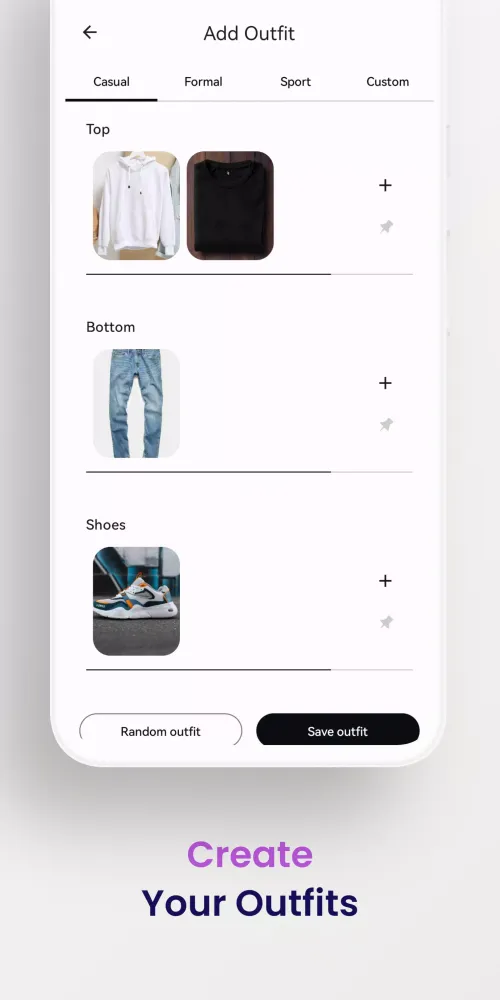 Once your wardrobe is organized, the real fun begins: creating outfits! With My Outfit, you can mix and match your favorite pieces to design complete looks tailored to your unique style. Whether you're putting together an office-appropriate ensemble or planning a casual weekend outfit, the app makes it easy to experiment without the hassle of trial and error. Save your favorite combinations directly to your calendar so you never forget what you intended to wear. This feature is especially useful for busy schedules, ensuring you stay on track and look great every day.