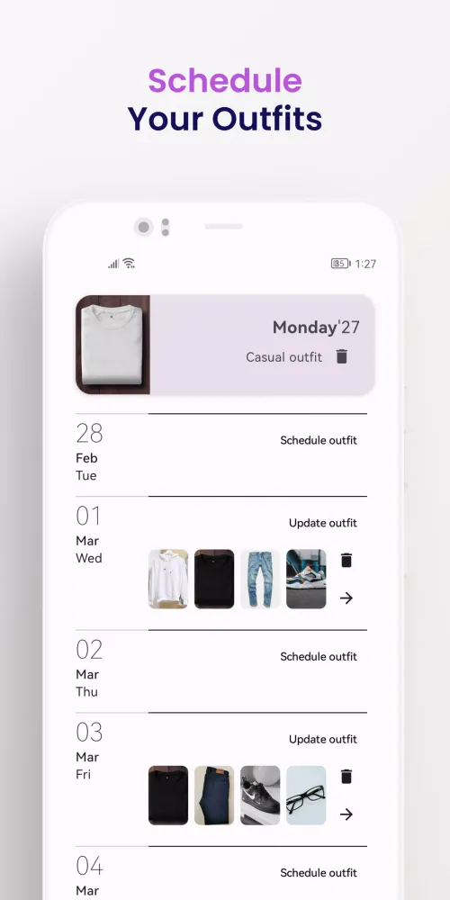 Are you tired of standing in front of your closet every morning, feeling like you have nothing to wear despite having a full wardrobe? Introducing My Outfit, the ultimate fashion companion designed to help you organize your wardrobe, create stunning outfits, and effortlessly plan your weekly looks. Whether you're a busy professional, a student, or someone who loves experimenting with fashion, this app is perfect for simplifying your daily routine while enhancing your personal style.