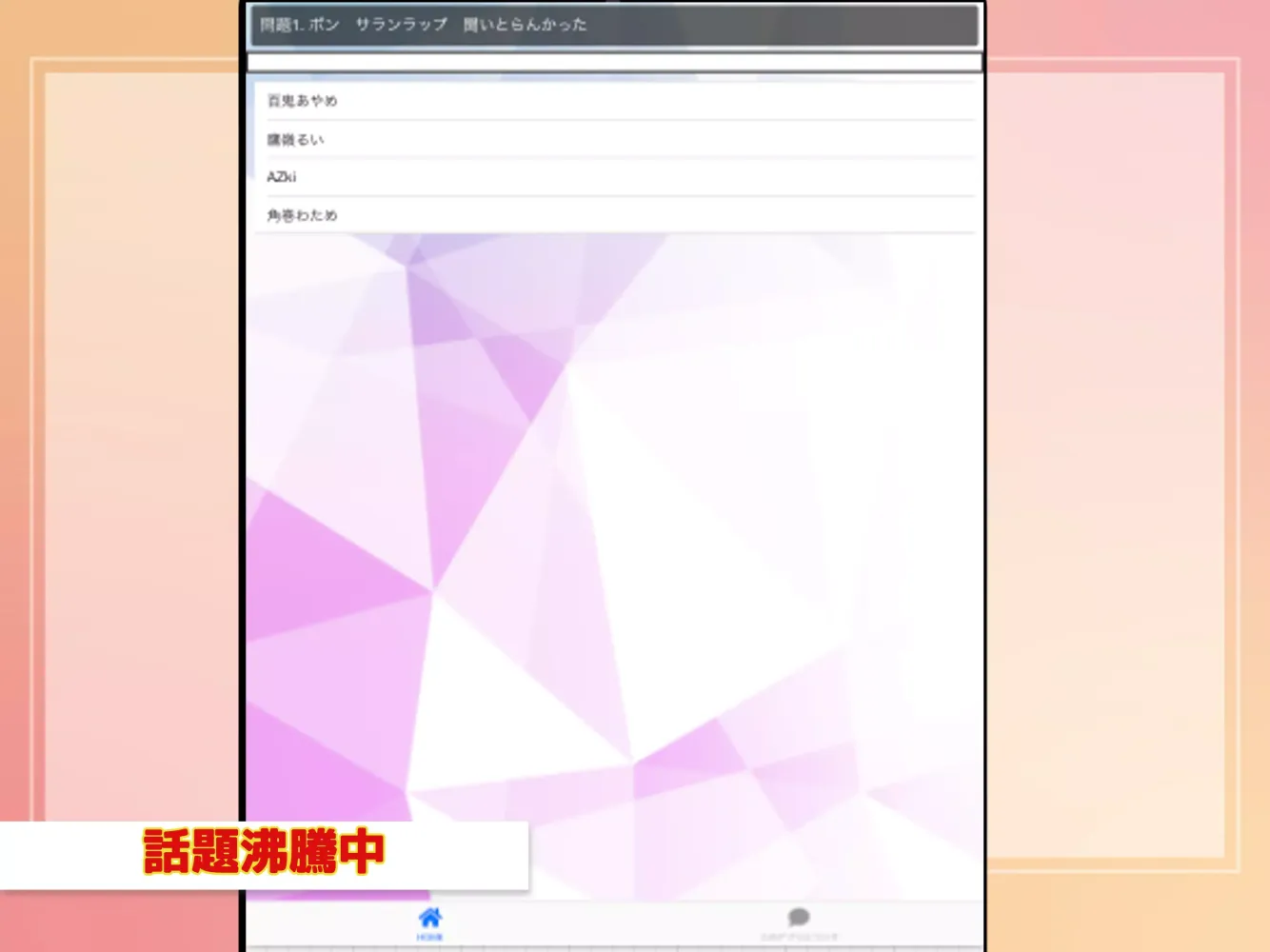 The "検定forホロライブ" quiz app is an engaging and interactive tool designed to test your knowledge about the world of Hololive Production, one of the most prominent virtual talent agencies in the virtual content industry. Hololive, which started as a female VTuber agency, has grown into a global phenomenon, with its influence reaching far beyond Japan. This quiz app aims to celebrate this incredible journey by offering users a fun way to deepen their understanding of Hololive's unique culture, its members, and its mission.