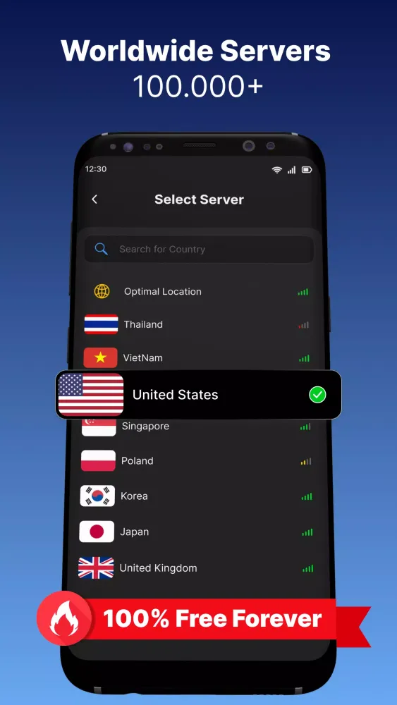 Troy VPN, video akışı, oyun oynama veya büyük dosyaları indirme gibi durumlarda düzensizlik olmayan bağlantı hızlarına sahiptir. Uygulama, hız, gecikme ve konuma dayalı faktörler göz önünde bulundurularak en hızlı sunucuyu otomatik olarak seçer ve bağlantınızı optimize eder. Dünya çapında yayılmış sunucular sayesinde, her zaman ihtiyaçlarınıza uygun en iyi sunucuya erişiminiz olur.