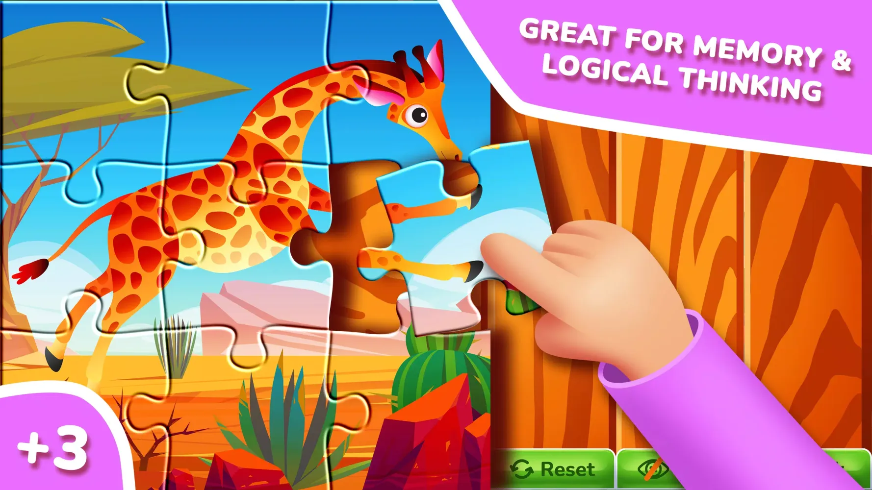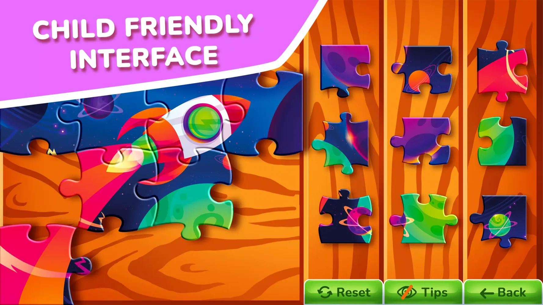 Uygulamanın kullanıcı dostu arayüzü, hem çocuklar hem de yetişkinlerin kolayca navigasyon yapmasına olanak tanır. 14 konu paketi ve 400'den fazla resim sayesinde her zaman yeni şeyler keşfedebilirsiniz. Parlak görseller ve basit tasarım, çocukların dikkatini bulmacalar üzerine yoğunlaştırmasına yardımcı olur. Uygulamadaki her resim, sadece pozitif duygular yaratmak için tasarlanmıştır ve oyun oynarken mutlu bir atmosfer yaratır.