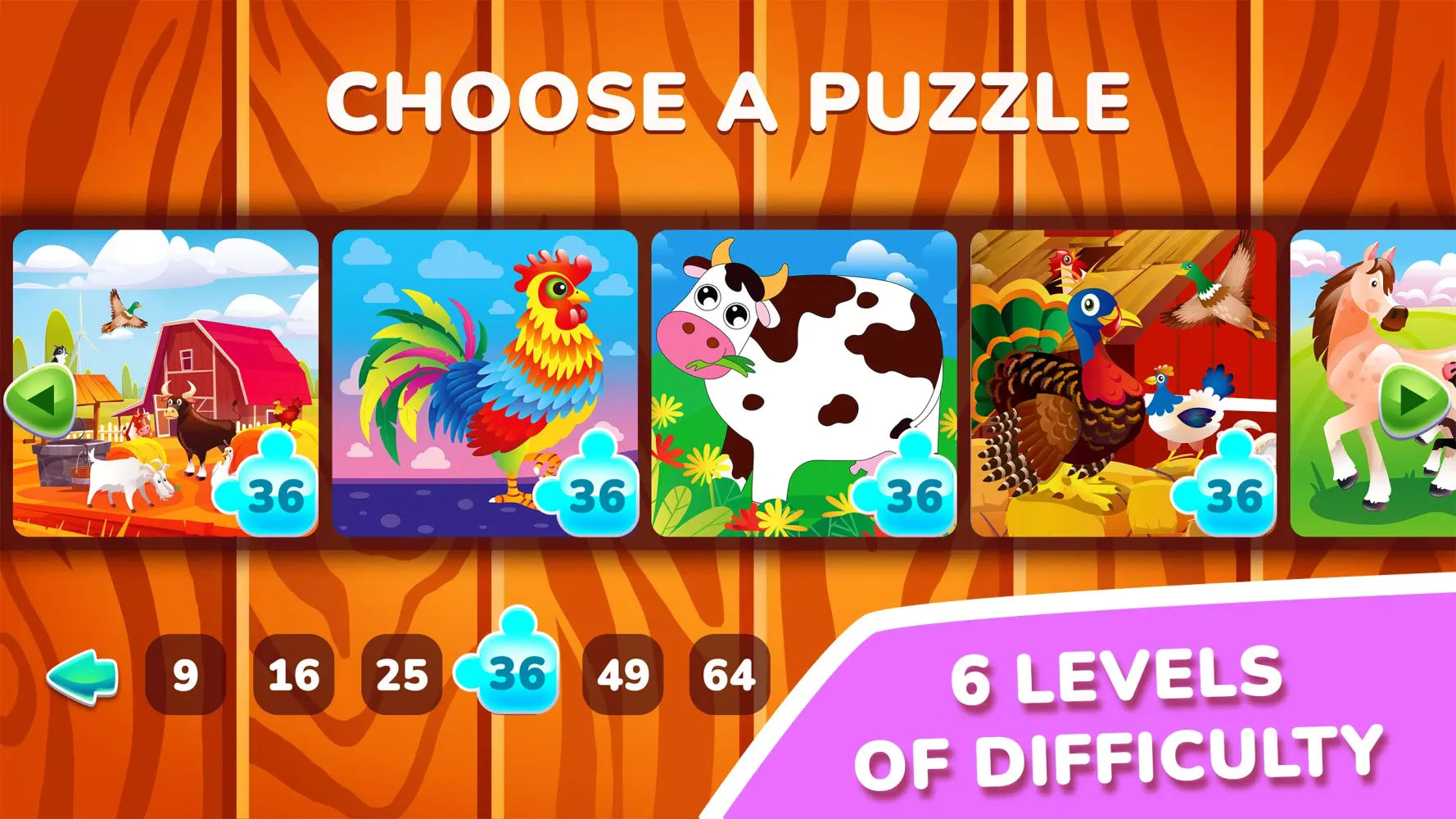 "Jigsaw Puzzle Games for Kids", 3 ile 8 yaş arası bebekler ve çocuklara yönelik eğitici bir uygulamadır. QUOKKA tarafından geliştirilen bu uygulama, öğrenme sürecini heyecan verici bir macera haline getirmeyi hedefler. 400'den fazla benzersiz bulmaca içeren bu uygulama, öğrenme resimleriyle güzel şekilde tasarlanmıştır. Her bulmaca, mantıksal düşünmenin merhaba olduğu, çocukların yaratıcılıklarını ve problem çözme becerilerini keşfetmesine olanak tanıyan ilgi çekici bir dünya açar. Uygulama, farklı zorluk seviyelerine sahip olup, hem küçük hem de daha büyük çocuklara onların yaşı ve beceri düzeyine uygun zorluklar sunar. Çocuğunuz her bulmacayı tamamladığında yıldız kazanır ve bonus bulmacaları açar, bu da başarı hissi ve motivasyonu teşvik eder.