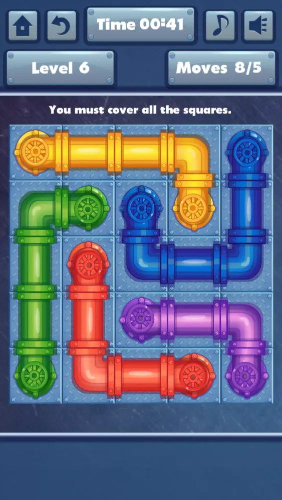 - Match Colors: Connect pipes of the same color to let the water flow.