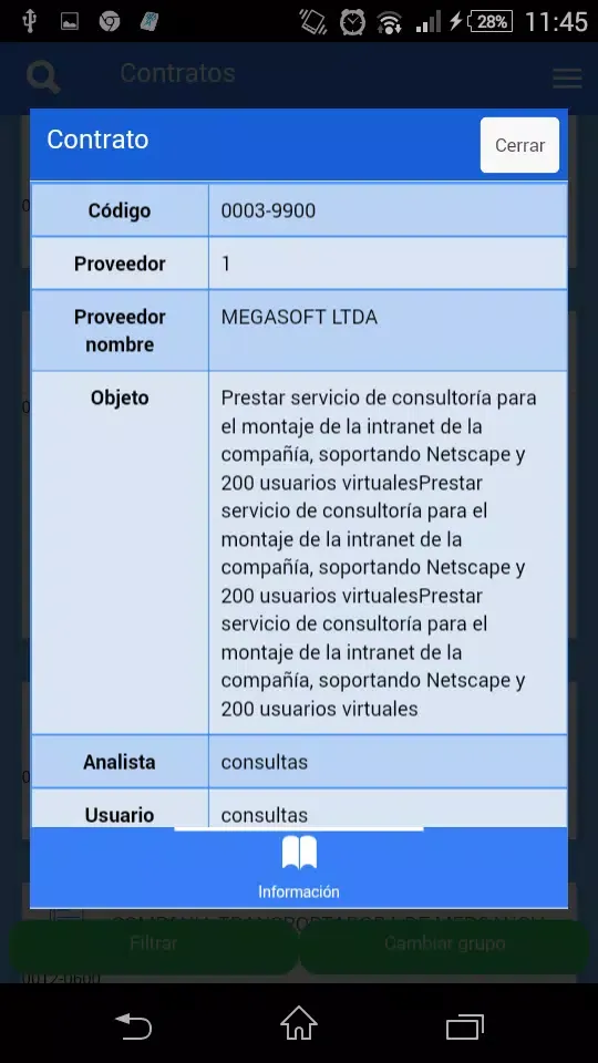 The NEON Móvil - Demo Megasoft application is a comprehensive tool designed to streamline and simplify the consultation process for contracts, files, and legal concepts. With this application, users can access critical information swiftly and efficiently, ensuring that all necessary data is readily available at their fingertips.