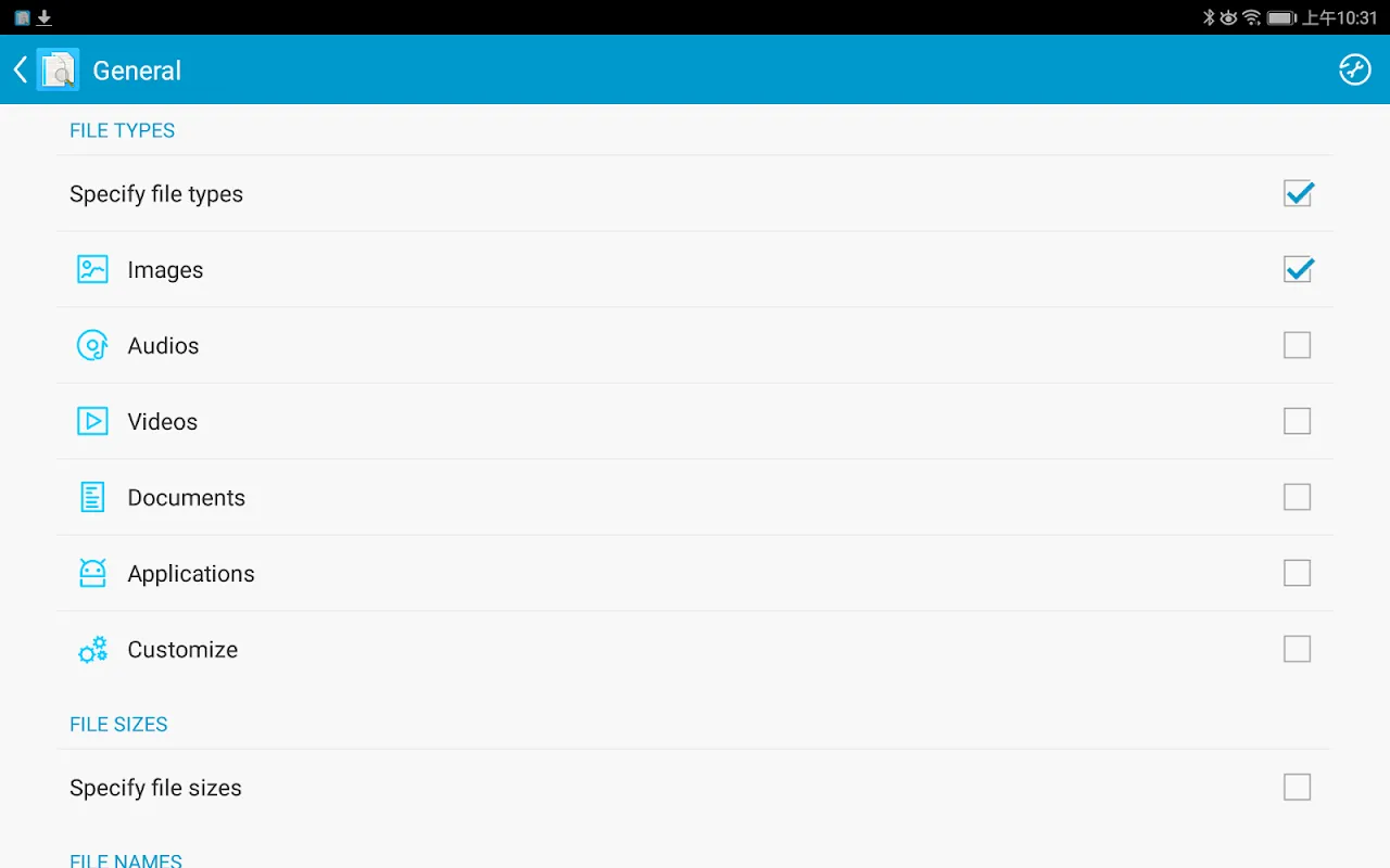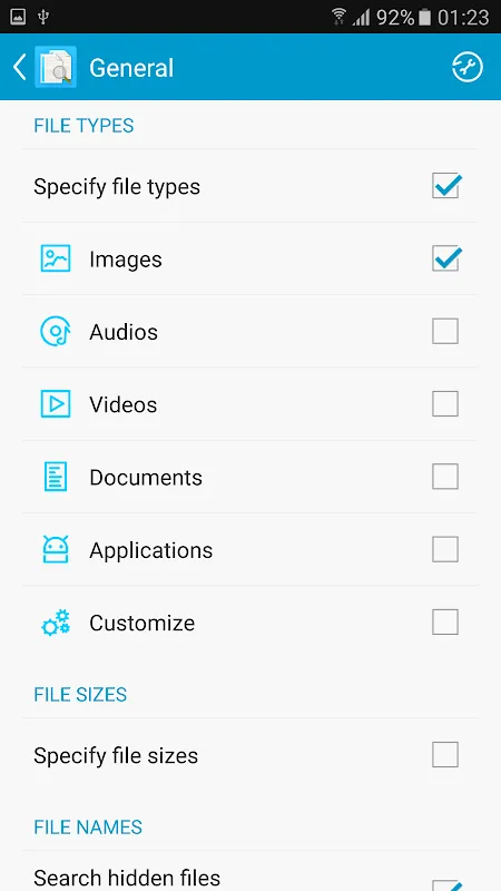 - Büyük Miktar Dosyalar Arama: Bu durumda OutOfMemoryError hatası olabilir. Bu sorunu önlemek için Ayarlar - Genel bölümündeki dosya boyutunu belirtin.