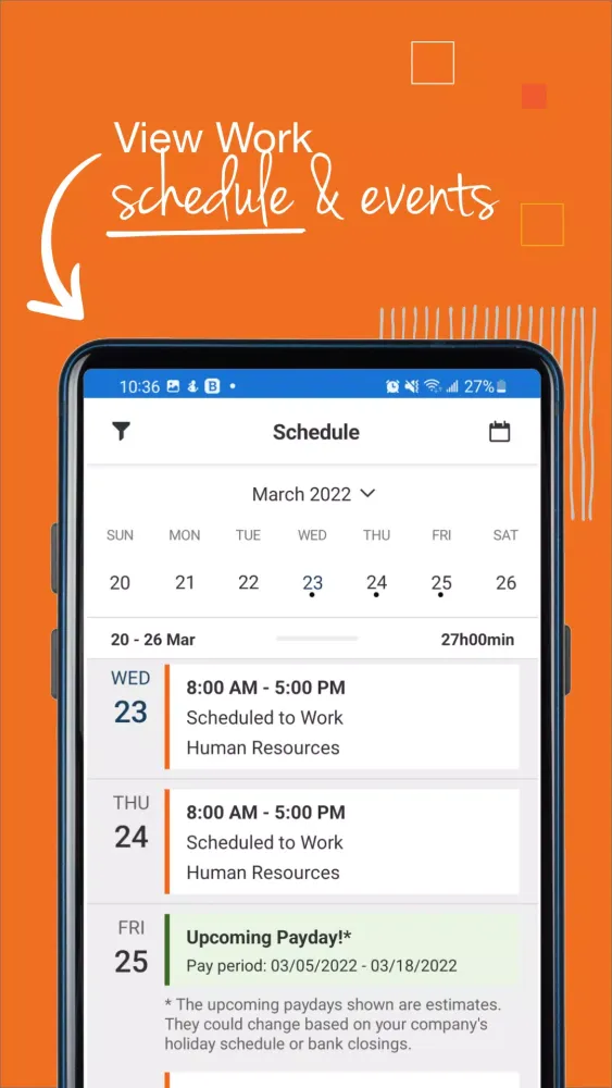 - Scheduling & Calendar: Stay informed about your work schedule, upcoming pay dates, and approved time off.