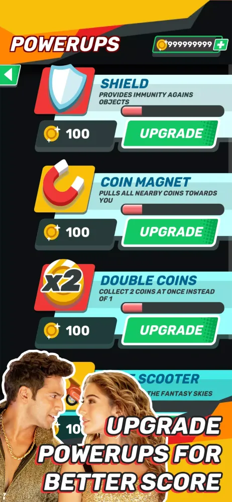 To make your journey even more thrilling, collect various power-ups along the way. These power-ups will help you cover greater distances and achieve unbeatable scores. Collect tons of coins to upgrade your power-ups, including head starts, shields, 2X coins, and the iconic Love Scooter!