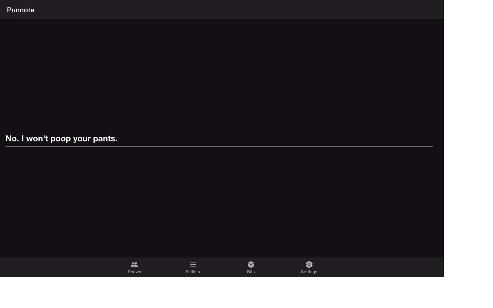 Punnote is a powerful yet straightforward application designed specifically for comedians and other performers who want to streamline their creative process and performance management. The primary purpose of Punnote is to provide a user-friendly platform where you can jot down and organize your comedic ideas, bits, setlists, and upcoming shows.