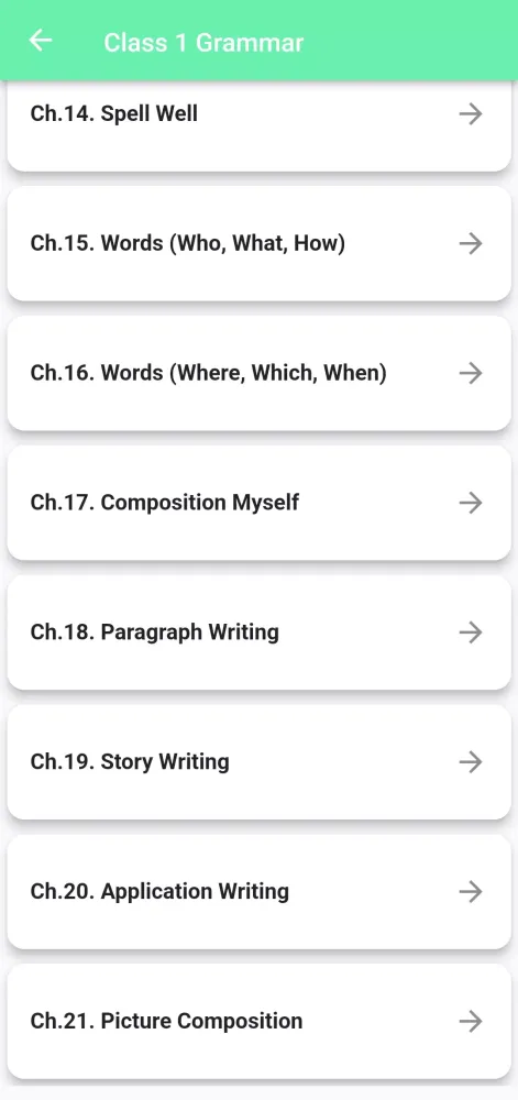 In summary, the Class 1 English Grammar Book is more than just an educational tool; it’s a companion that fosters curiosity and confidence in young learners. By combining simplicity, interactivity, and thoroughness, this app sets the stage for a successful start in English grammar education. Whether used at home or in the classroom, it promises to deliver results while keeping the learning process enjoyable and rewarding.