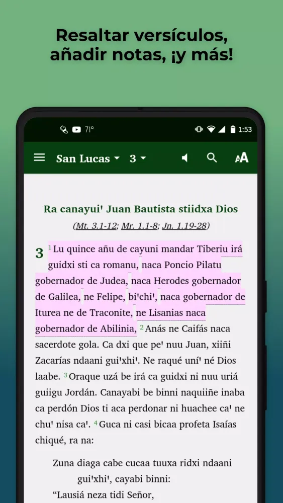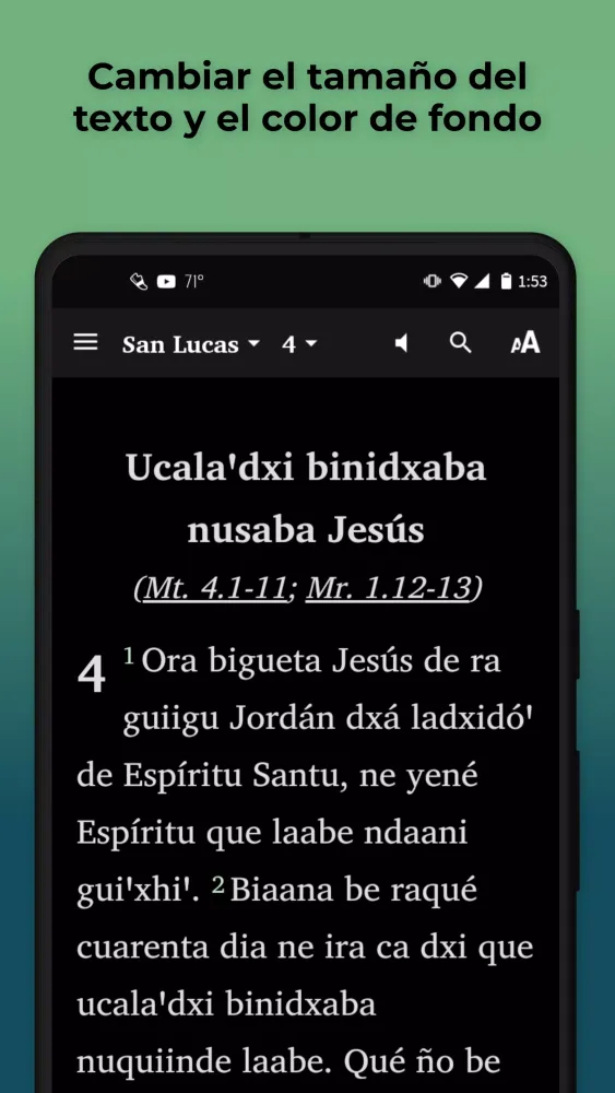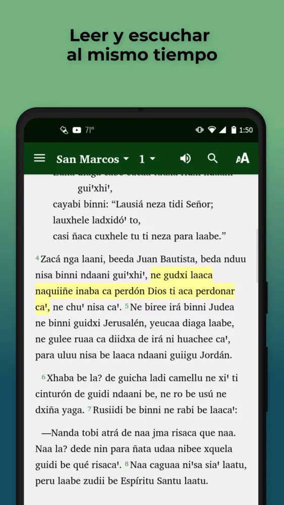 In summary, the Isthmus Zapotec Bible app represents a significant effort to bring the Word of God to speakers of Isthmus Zapotec in a format that combines traditional scripture reading with modern technological enhancements like audio playback and text synchronization. Whether you're a native speaker seeking spiritual guidance or someone interested in linguistic diversity, this app provides a valuable resource for engaging with the Bible in a culturally relevant manner.