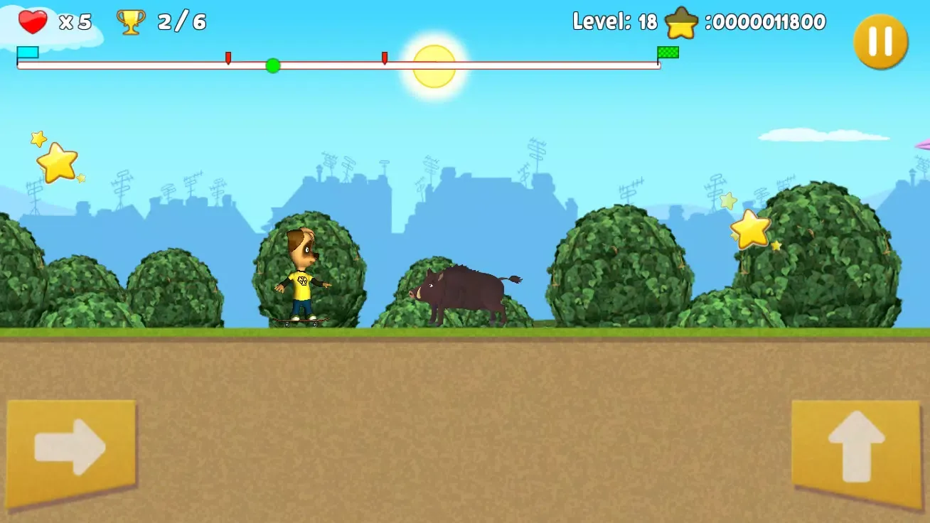 In this game, you'll join the Pooches (also known as Barboskiny) on their thrilling skateboarding adventures. You can choose to accelerate or jump using just two buttons, making it incredibly easy to control. The game features two distinct zones, each containing 30 levels with diverse landscapes, ensuring endless excitement and challenges.
