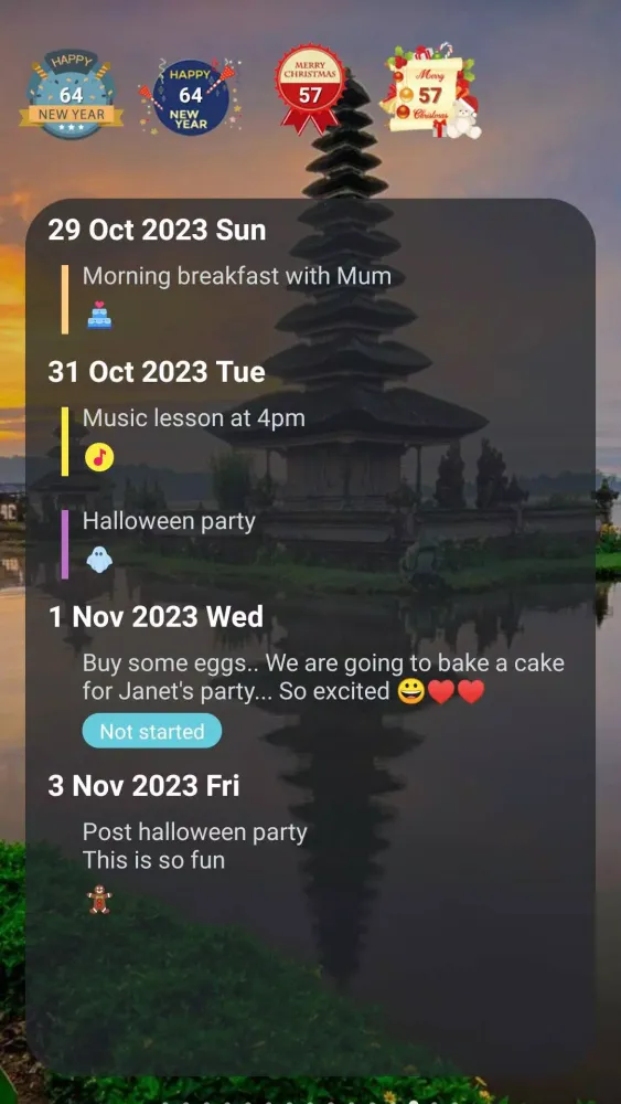 One standout feature of the Pakistan Calendar is its ability to serve as a widget, providing quick access to critical information right from your home screen. This convenience extends beyond just holidays; the app also includes countdown widgets for major global events like Christmas and New Year's Eve, ensuring you’re always prepared for celebrations. For those who wish to go beyond tracking holidays, the app allows you to add your own events—whether they’re daily reminders, weekly check-ins, or annual milestones such as birthdays, vacations, or sports events. Each event is color-coded and labeled with intuitive icons, making it easier than ever to stay on top of your schedule. Creating events is straightforward—you simply specify the start and end dates, and the app takes care of the rest.
