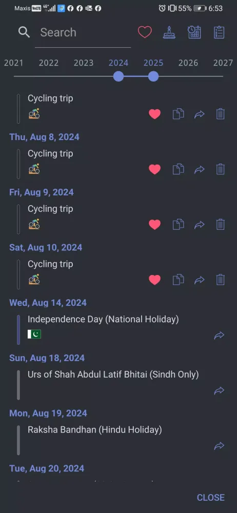 Beyond its core functionalities, the Pakistan Calendar offers several innovative extras, such as the ability to create recurring events at custom intervals. Deleting events is equally streamlined—you can swipe left to remove single instances or entire series of events. In the monthly view, holding longer on a specific date allows you to delete all events for that day. Themes can be switched between dark and light modes, giving users ultimate control over their visual experience. Event filters can also be customized with preferred colors, and a lock time zone feature is available for frequent travelers.