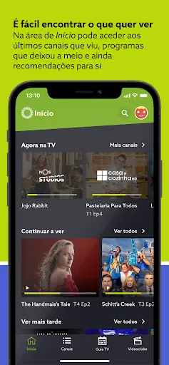 Na área Início, encontra os últimos canais que viu, os programas que deixou a meio e as suas gravações. Tudo num único lugar: é simples e rápido.