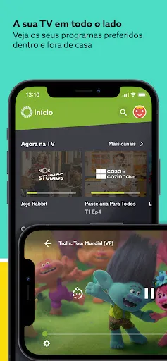 Pode aceder à App NOS TV no Smartphone, Tablet, PC, Chromecast, Airplay, AppleTV, Smart TV e Xbox. Pode ainda ver os seus programas preferidos em qualquer lugar, na sala, no quarto, no autocarro, no aeroporto ou até mesmo quando está à espera de uma consulta.