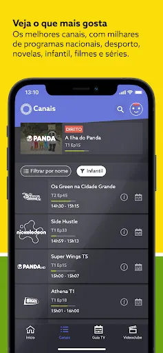 Milhares de programas como filmes e séries, desporto, novelas, música, infantil e lifestyle, incluindo canais premium subscritos. Agora ainda é mais fácil encontrar o seu canal preferido, bastando escolher uma temática como desporto ou filmes e séries para encontrar todos os canais dessa temática.