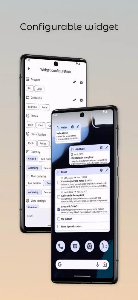 At its core, jtx Board uses the robust iCalendar standard to ensure compliance with VJournal and VTodo components. VJournal entries allow you to log journal entries with specific start dates, while those without a start date are treated as notes. On the other hand, VTodo components define tasks with detailed attributes such as scheduled start times, due dates, completion statuses, and progress tracking. This approach not only aligns with industry standards but also sets jtx Board apart by integrating these components into a cohesive experience. Future updates will introduce import and export functionalities for .ics files, further enhancing its utility.