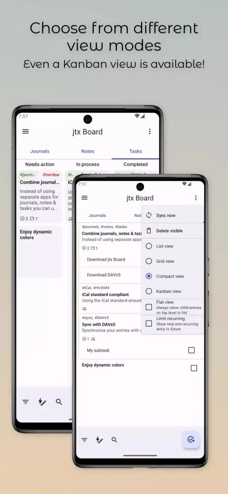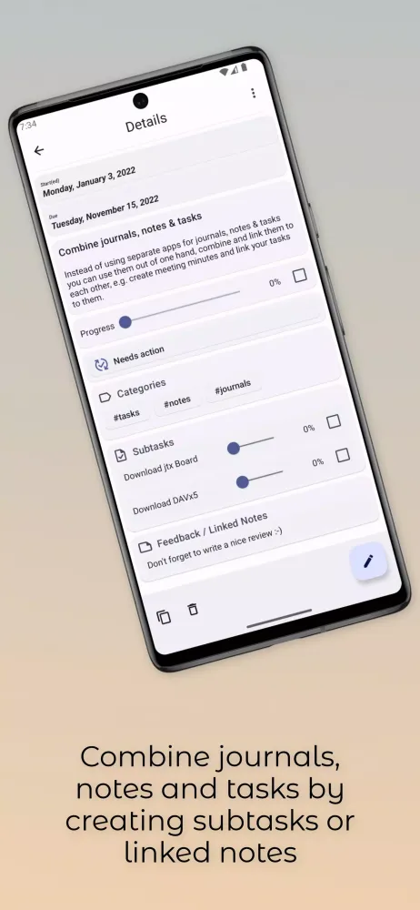 One of the standout features of jtx Board is its ability to combine journals, notes, and tasks seamlessly. Instead of relying on multiple apps for different purposes, jtx Board consolidates everything into a single interface. For example, you can effortlessly create meeting minutes and link related tasks directly to them, streamlining workflows and improving organizational efficiency. This integration fosters collaboration and ensures that all relevant information is easily accessible, whether you're working alone or coordinating with a team.