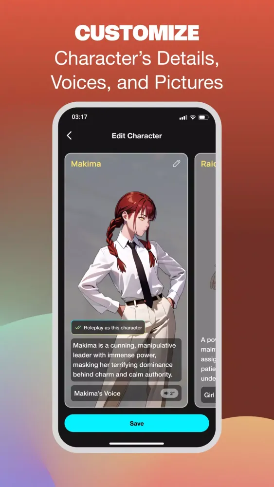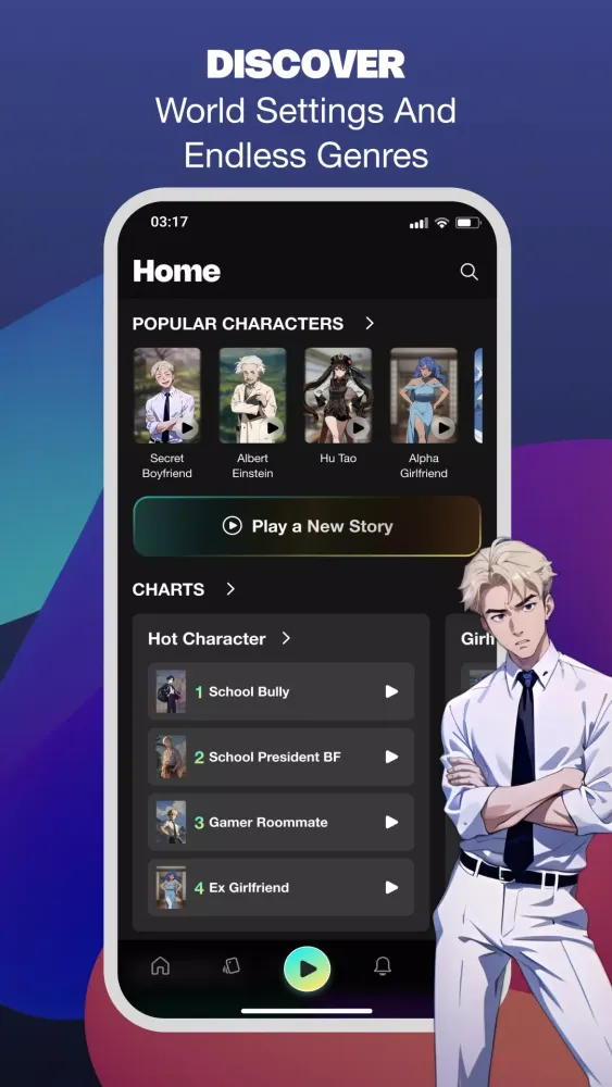 In Sekai, you have the freedom to design your ideal anime characters. From hairstyles and outfits to personality traits, you can fully express your creativity. Our intuitive tools make it easy to bring your visions to life, ensuring each character is a true reflection of your imagination.