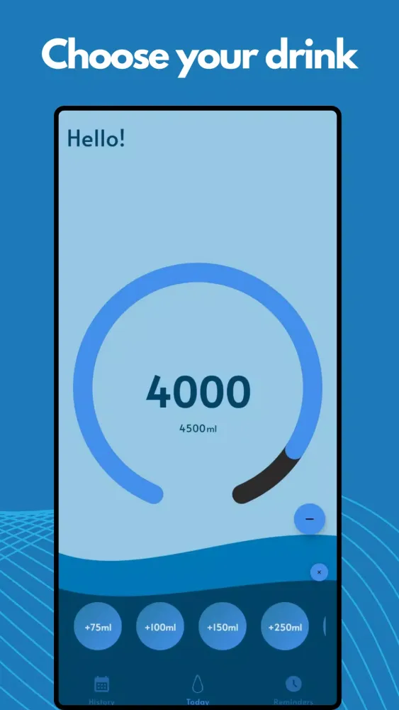 Stay on top of your hydration journey with ease. Our app allows you to monitor your water intake in real-time and visualize your progress, helping you reach your daily water goals effortlessly.