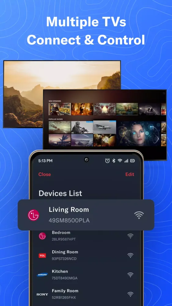 With the "Remote control App for All TV," you can control both Wi-Fi-enabled Smart TVs and non-smart TVs that use an IR Blaster. Whether you have a Smart TV, Samsung TV, LG TV, Sony TV, Roku TV, or Hisense TV, this universal remote control app has you covered. It supports a variety of brands, ensuring that you can manage your TV experience seamlessly.