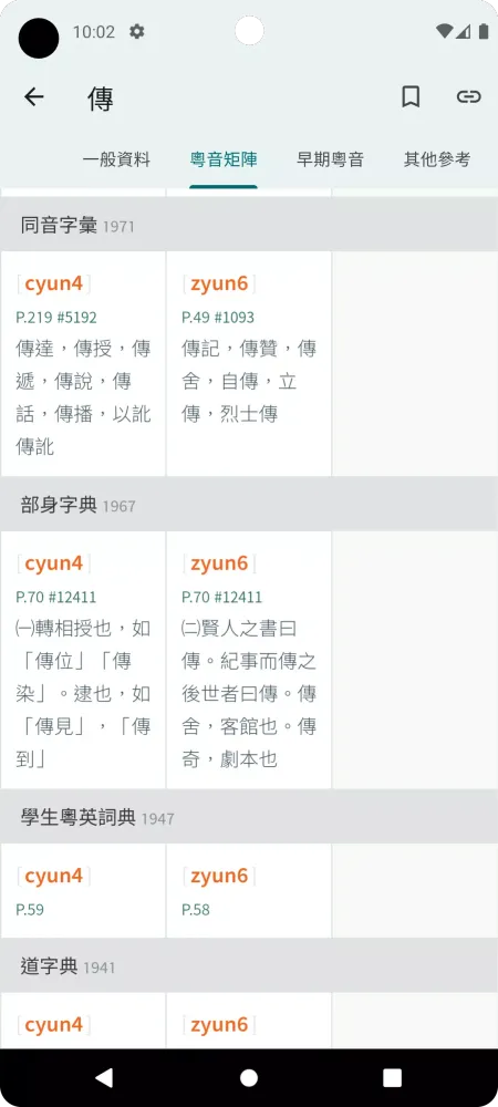 Given that the "粵音集叢" focuses primarily on pronunciation data without detailed explanations or usage examples, it is best suited for intermediate and advanced Cantonese speakers seeking to resolve everyday pronunciation uncertainties. Whether you're a researcher, student, or simply someone passionate about the Cantonese language, this application will serve as an invaluable tool in your journey to master Cantonese pronunciation.