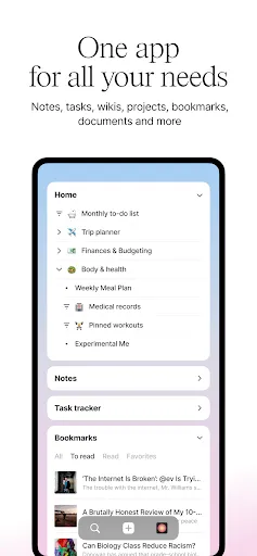 Take back ownership of your digital life - starting with your notes, bookmarks, documents, tasks, and ideas. Everything you create in Anytype is secure, end-to-end encrypted and offline-accessible.