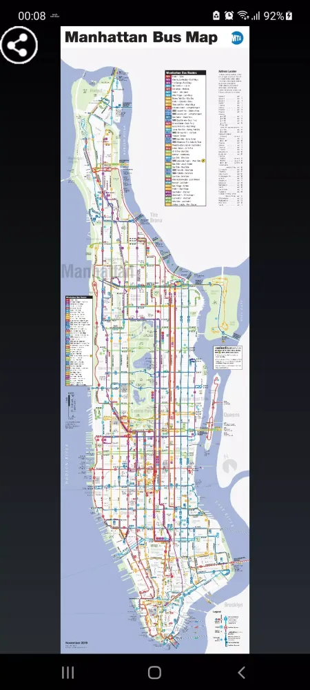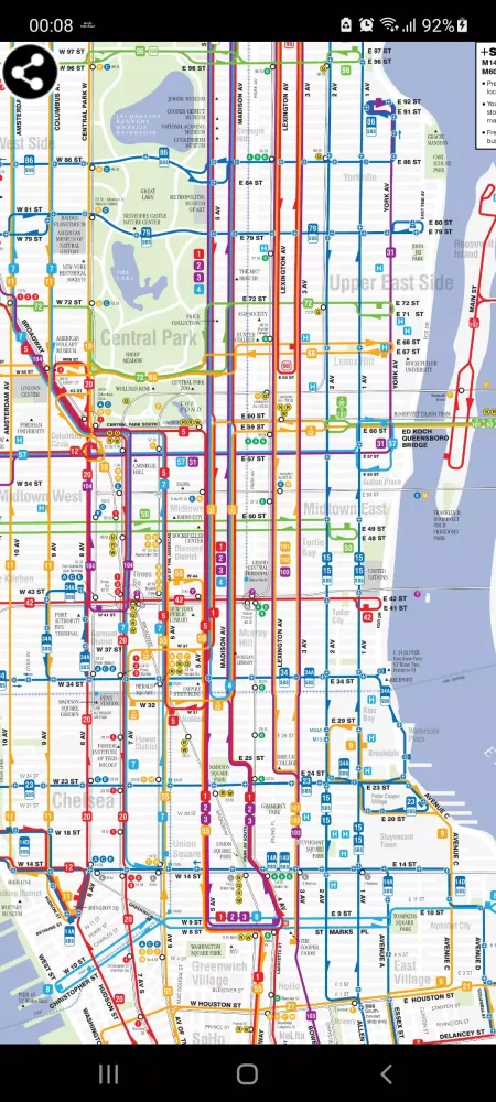 Designed with practicality in mind, the "Manhattan Bus Map" offers a robust set of tools to assist users in their urban explorations. Its large transportation map covers all major bus routes within Manhattan, providing a clear and concise overview of the city's public transit system. The absence of unnecessary settings ensures a clutter-free interface, allowing users to focus solely on their journey. With these features combined, the "Manhattan Bus Map" stands out as an indispensable companion for anyone navigating the dynamic landscape of New York City.
