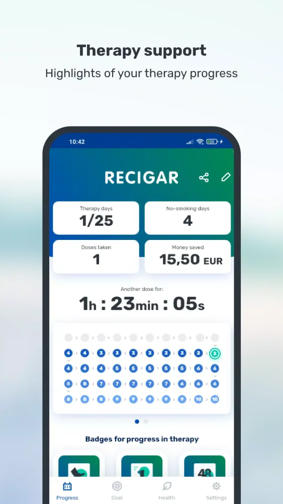This app focuses on aiding your efforts to quit smoking by providing tools tailored specifically to help you stay motivated and track your progress. With the right dosage of the Recigar drug, combined with guidance from the app, you’ll be equipped with everything you need to break free from nicotine dependence. Let’s explore some of the key features that make this application unique.