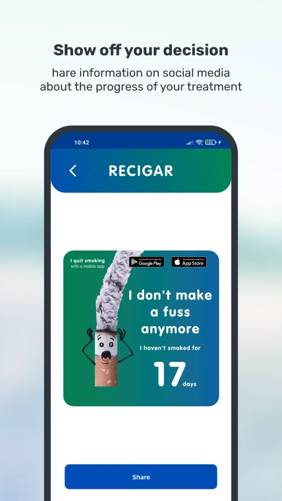 With "Quit smoking with Recigar," you’re not just downloading an app—you’re joining a supportive network dedicated to helping you achieve lifelong health. Take charge of your future and embrace the freedom that comes with being smoke-free. Download the app today and embark on a transformative journey toward better health and happiness!