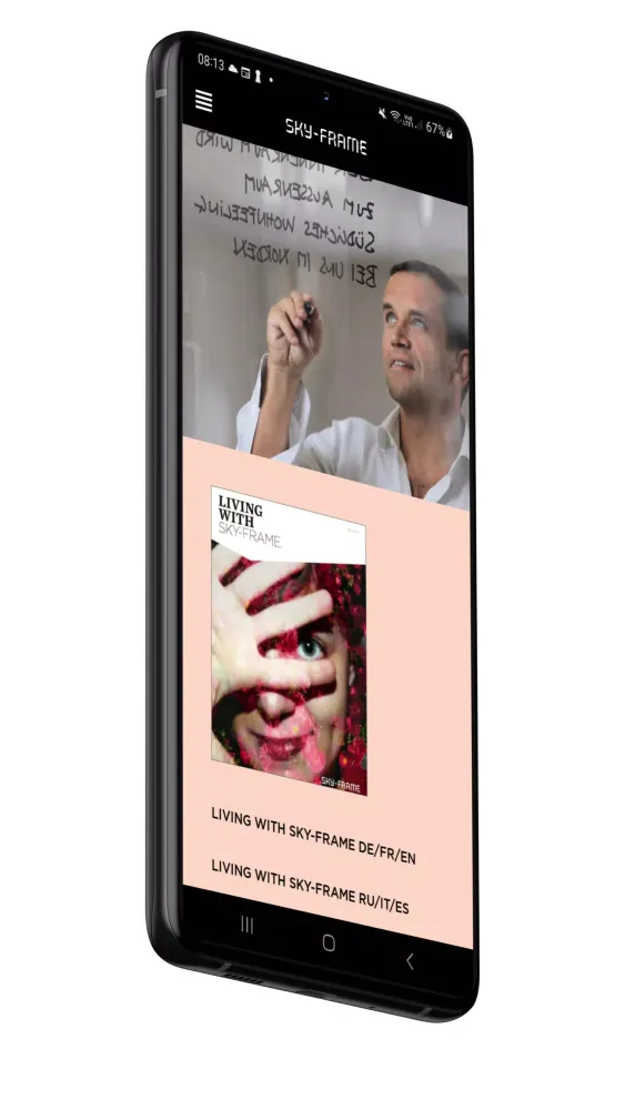 On the other hand, certified partners benefit from a tailored experience designed to support their work on the ground. These partners gain instant access to all relevant product information, references, installation guides, and additional resources, no matter where they are—whether at a construction site or during a customer meeting. This accessibility is particularly valuable, as it ensures that partners can quickly retrieve critical details without being constrained by network limitations. The Sky-Frame app acts as a portable knowledge base, empowering partners to make informed decisions and provide exceptional service to their clients. With just a few taps, partners can access the tools they need to enhance their expertise and maintain a competitive edge in the market.
