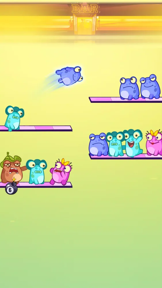 At its core, Frog Sort Color is a sorting game puzzle that challenges you to guide colorful frogs back to their homes. With over 3000 levels available, this game promises endless entertainment and mental stimulation. Each level introduces new obstacles designed to keep things interesting, such as bombs, sleepy frogs, cage locks, egg-and-hammer combinations, and locked stand levels. These challenges require strategic thinking and quick decision-making to succeed. As you progress through the game, the complexity increases, introducing more colors and frogs to manage, ensuring that every stage feels fresh and rewarding.