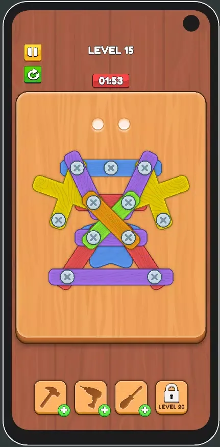 Experience the thrill of "Screw WoodenBolts: Nuts Puzzle." Start your adventure now!